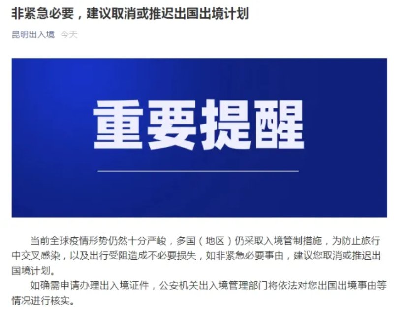 當(dāng)前全球疫情形勢(shì)仍然十分嚴(yán)峻,多國(guó)(地區(qū))仍采取入境管制措施,為防止旅行中交叉感染,以及出行受阻造成不必要損失,如非緊急必要事由,建議您取消或推遲出國(guó)境計(jì)劃。