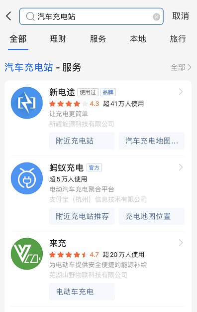 點擊支付寶APP,進入城市服務欄目看到,已出現一項名為“車主”的新服務,點擊進入即可發(fā)現“汽車充電站”服務功能,在接受“服務授權”后,即可查詢到附近充電樁站點位置。
