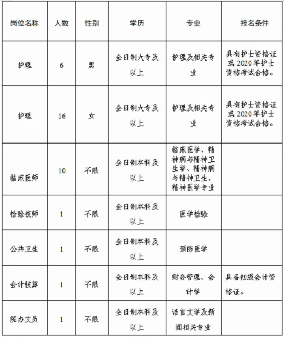 大理州第二人民醫(yī)院始建于1978年,是一所集精神衛(wèi)生預(yù)防、治療、科研、教學(xué)為一體的三級(jí)甲等精神病專(zhuān)科醫(yī)院。為滿足醫(yī)院業(yè)務(wù)發(fā)展的需要,現(xiàn)面向社會(huì)公開(kāi)招聘編制外專(zhuān)業(yè)技術(shù)人員36名,有關(guān)事宜公告如下: