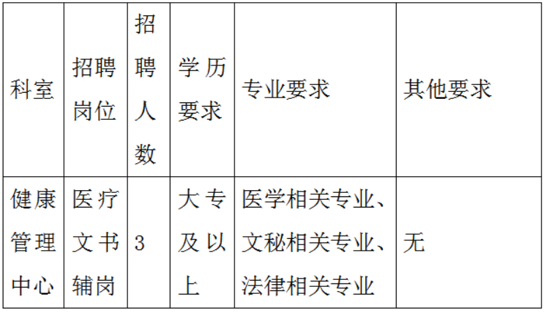康管理中心面向社會公開招聘輔助崗位人員3名(非事業(yè)編制,勞務(wù)派遣方式),現(xiàn)將有關(guān)招聘事宜公告如下: