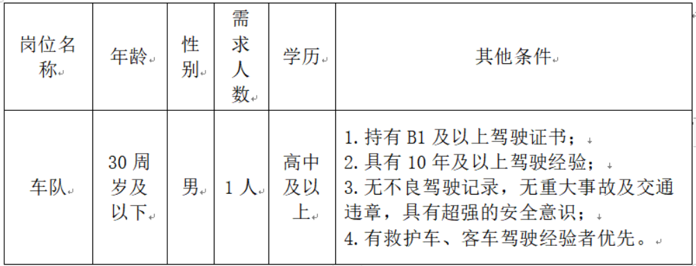 因工作需要,根據(jù)科室用人計(jì)劃,經(jīng)醫(yī)院研究決定,計(jì)劃招聘車隊(duì)駕駛?cè)藛T1名,現(xiàn)將有關(guān)招聘事宜公告如下。