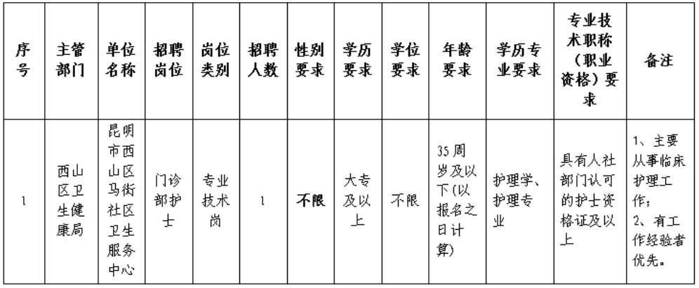 昆明市西山區(qū)馬街社區(qū)衛(wèi)生服務(wù)中心招聘編外專技人員公告