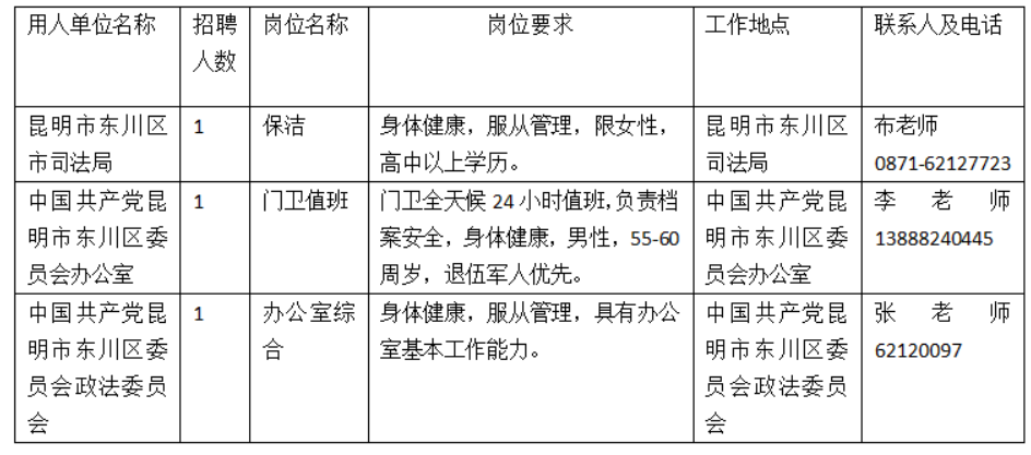 昆明市東川區(qū)司法局等三個(gè)單位公益性崗位招聘啟事