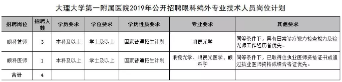 大理大學(xué)第一附屬醫(yī)院2019年公開(kāi)招聘眼科編外專業(yè)技術(shù)人員公告